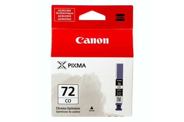 The PGI-72CO Chroma Optimizer for the PIXMA PRO-10 Professional Inkjet Printer is a critical element to attaining professional print quality with accurate color and reduced metamerism, on coated papers. The Chroma Optimizer reduces the difference in ink droplet height to form a flat and smooth ink layer. The result is evenly reflected light, deep blacks, and bright, saturated colors.