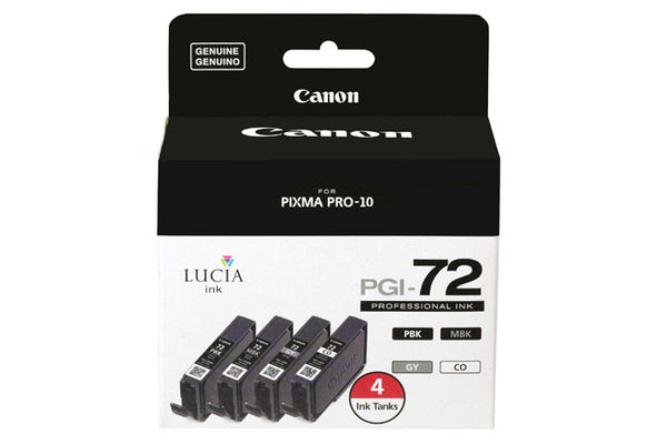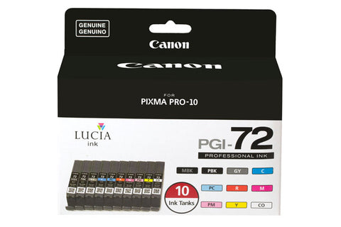 Includes PGI-72 Ink Tanks: Matte Black, Photo Black, Gray, Cyan, Magenta, Yellow, Photo Cyan, Photo Magenta, Red, and Chroma Optimizer.