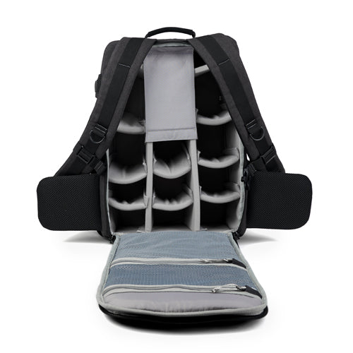 The ProMaster Cityscape 75 Photo Backpack has a clean, modern style. It is lightweight to carry yet constructed of durable materials for years of service. Numerous pockets hold all types of accessories. The main compartment opens from the back of the bag, to keep your gear secure while the technical harness provides hours of carrying comfort.