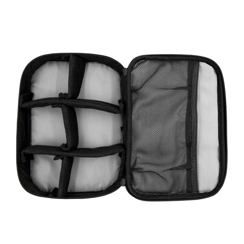 The ProMaster Impulse Handy Case is a small, multi-purpose bag that organizes items and accessories you might otherwise lose track of. Its main compartment is great for an action camera kit, mirrorless camera, speedlights, portable hard drive, battery chargers, microphones, and other types of larger accessories. Its thin, secondary compartment has pockets and elastic bands for holding cables, memory cards, batteries, filters, and more. With the Handy Case you’ll never have to ask yourself “Now where did I put that?”