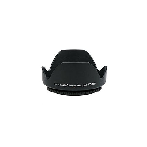 The PROMASTER SystemPRO Universal Lens Hood is specially designed for the wide focal lengths required by today's digital SLR cameras. It's petal shape design is instrumental in helping to reduce glare while minimizing the potential for vignetting of your image. The unique two-piece design of this hood allows you to quickly and easily reverse the hood for storage. The mounting collar accepts your standard lens cap for the ultimate in protection. Fits Lenses with a 77mm Filter Size