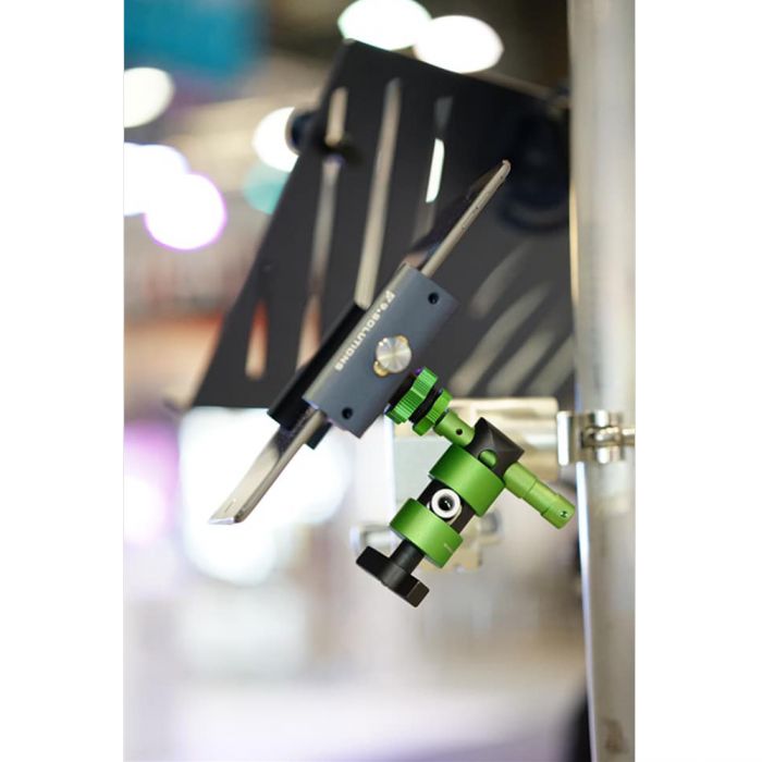 The Tablet Holder is an ideal support tool for the media production environment with its multiple 1/4”-20 and 3/8” -16 tapped mounting points on all sides. This enables it to be mounted from any of its sides and allows peripheral equipment to be placed around it. It features a spring loaded jaw which enables easy one hand placement and retrieval of the tablet with or without a protective case.