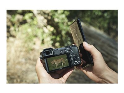 The α6600 packs great performance and features in its compact body, with the world's fastest AF speed, broad AF coverage and subject tracking. Five-axis optical image stabilization ensures stunning image quality for high-resolution 4K HDR (HLG) movie recording and stills, while the high-capacity battery and mic and headphone jacks support your filmmaking.
