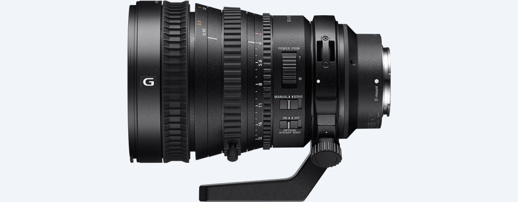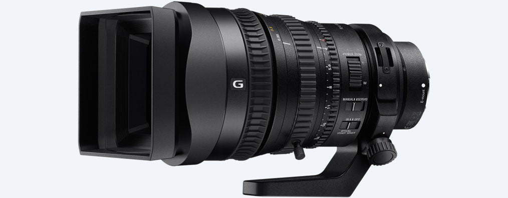 This powered zoom lens has been created to satisfy professional optical and operational requirements for high-quality movie imagery, including 4K and future formats, when matched with a high-performance 35 mm full frame format camera or Super 35 format camcorder. Focus breathing, image shift, and all types of aberration have been minimized. (Super 35 format camcorder Sony PXW-FS7 with SELP28135G shown above.)