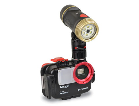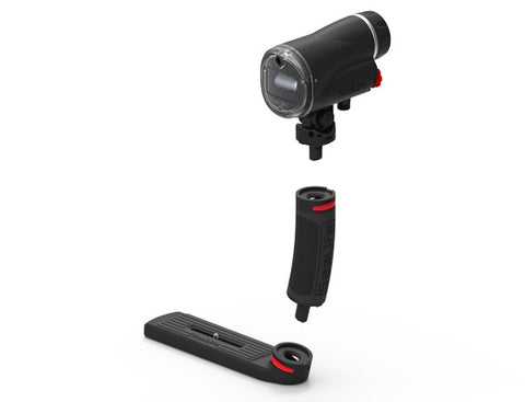 The rubber-armored grip "clicks" directly into any Flex-Connect tray and accepts all Flex-Connect accessories and Sea Dragon Lights & Flash heads.