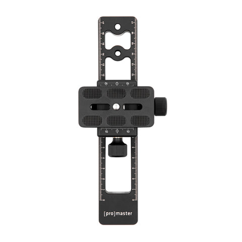The ProMaster Dovetail Macro Sliding Rail fits ProMaster tripods, heads, and gimbals that use the Dovetail Mounting System, as well as other Arca-type products. The base of the rail attaches to a dovetail tripod head and can be slid back and forth for best positioning.