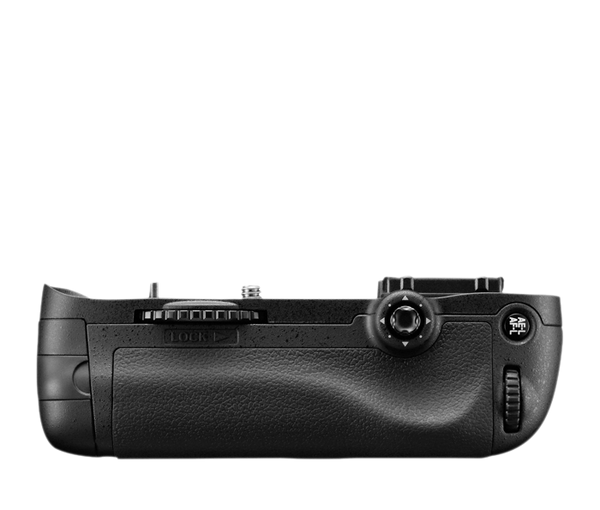 The MB-D16 is equipped with a shutter-release button, AE/AF lock button, multi selector, and main- and sub-command dials for improved operation when taking photographs in portrait (tall) orientation.