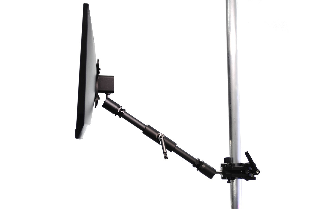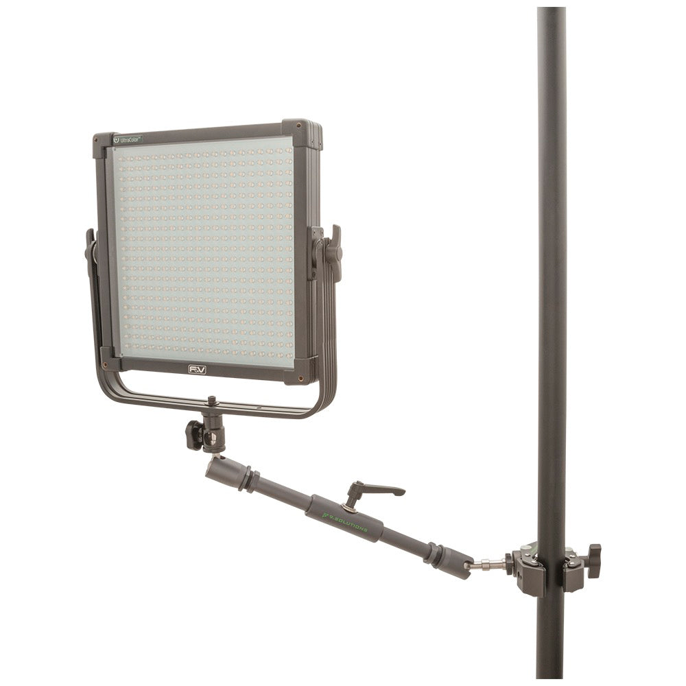 The Double Joint Arm has ball joints on both ends that are locked into position by a single-point tightening mechanism. Each ball joint has a 5/8" pin with a 3/8"-16 female thread, making it easy to mount and position lights, cameras, monitors, or a wide variety of equipment at any angle.