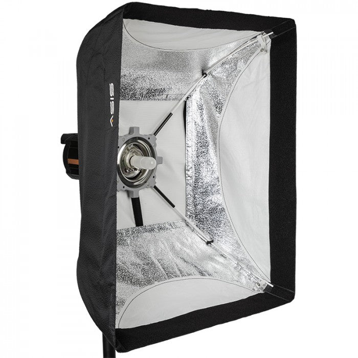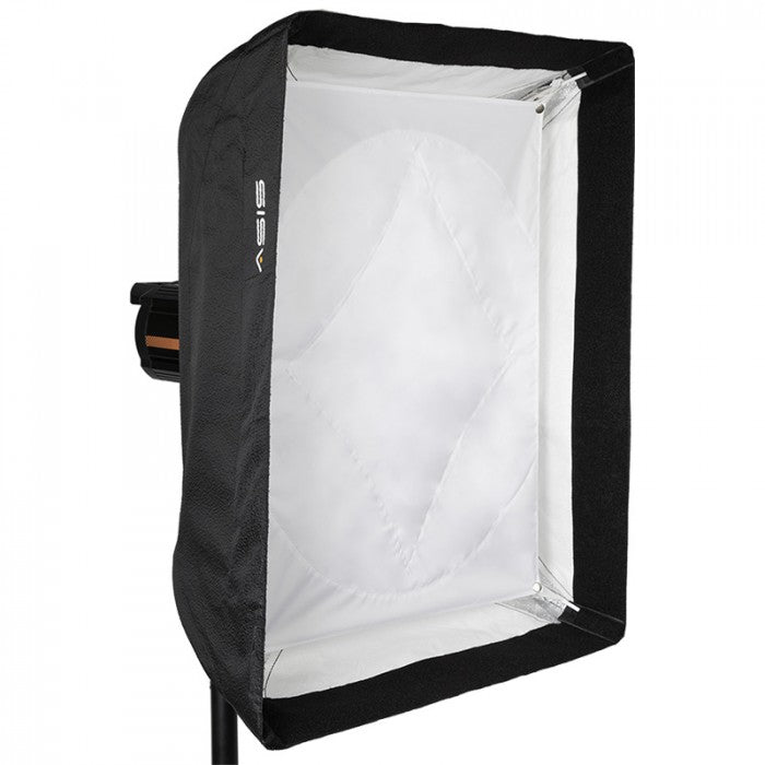 The Asis Illuma Softbox sports a thin profile, a half-radial depth, which produces better efficiency, more stability and greater mobility than other soft boxes. The Asis Illuma 56 front measures 22 x 33” and it is 13.25” deep.