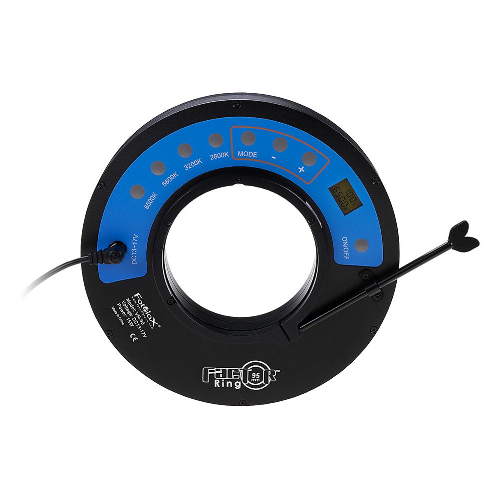 FACTOR Ringlights are equipped with ultra-bright dual colored LED chips with a lifespan of up to 50,000 hours. Flicker-free and uniformly dimmable from 10%-100% due to the PWM integrated design. Beautifully soft light - ideal for location and studio productions for both photographers and filmmakers. The light level is fully dimmable from 10%-100% throughout the 2800k to 6500k color temperature range, giving you options beyond daylight and tungsten to match lighting wherever you may be.
