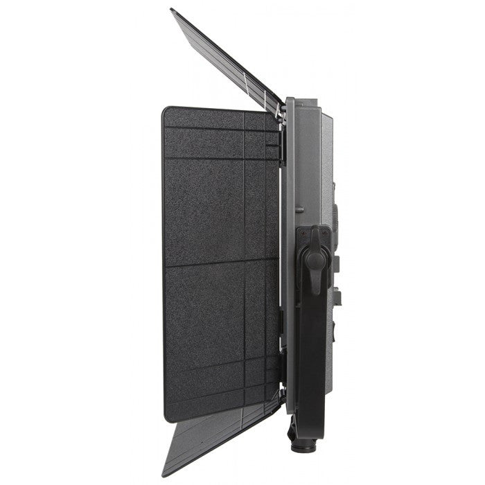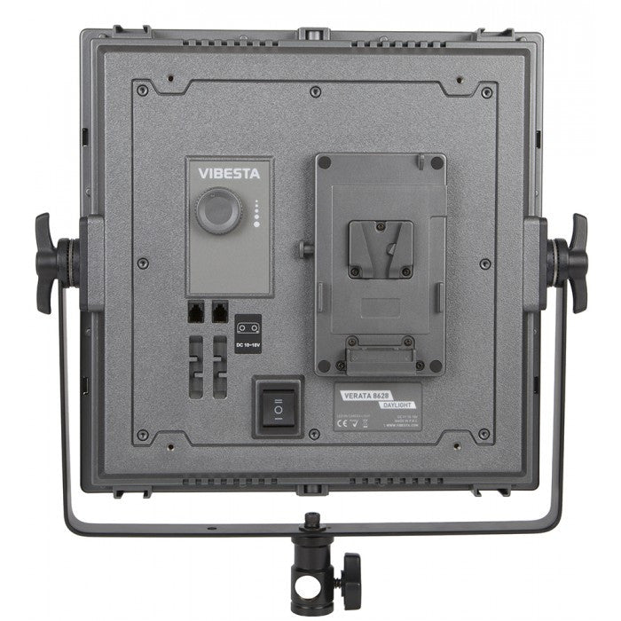 The Verata 8628 is a 1x1' panel with 1296 high-power LEDs and built-in barn doors. This light weight, durable panel is a perfect unit for photographers and videographers shooting both in the studio and on location. When in the studio, you can power the unit via the included AC Power Adapter, and when you are shooting on location, you can power the light via its built-in v-mount battery plate. At full power, you can achieve roughly 1 hour of run time on a 99Wh battery.