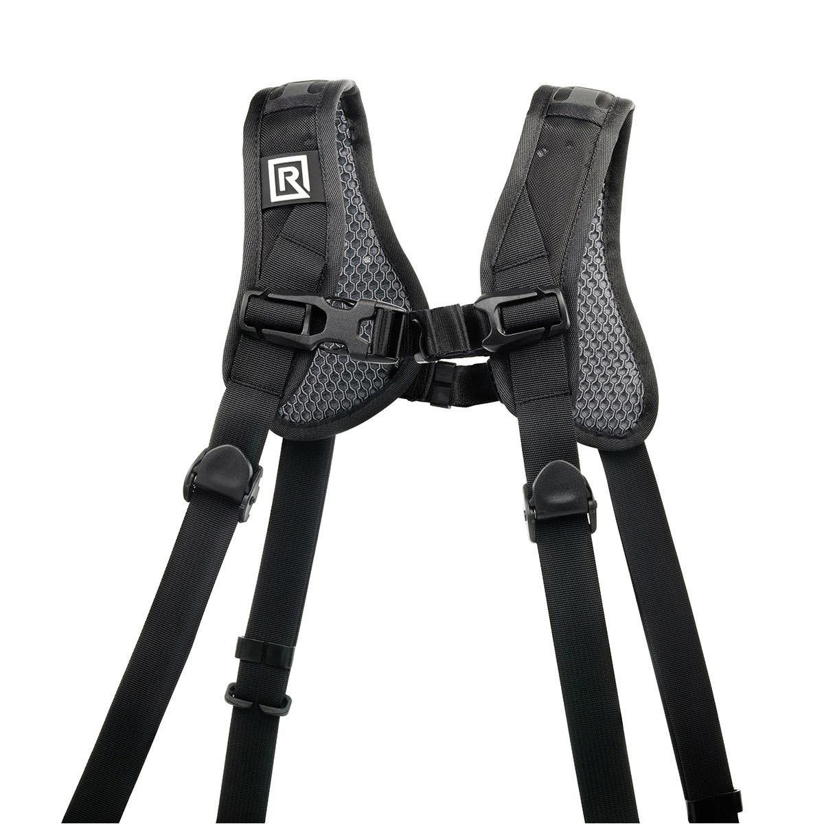This patented double camera strap/harness is a work-horse for those long days of shooting with two cameras. Hang out with your 70-200 on your right side and your favorite closer lens on your left. Now you’re ready for business.