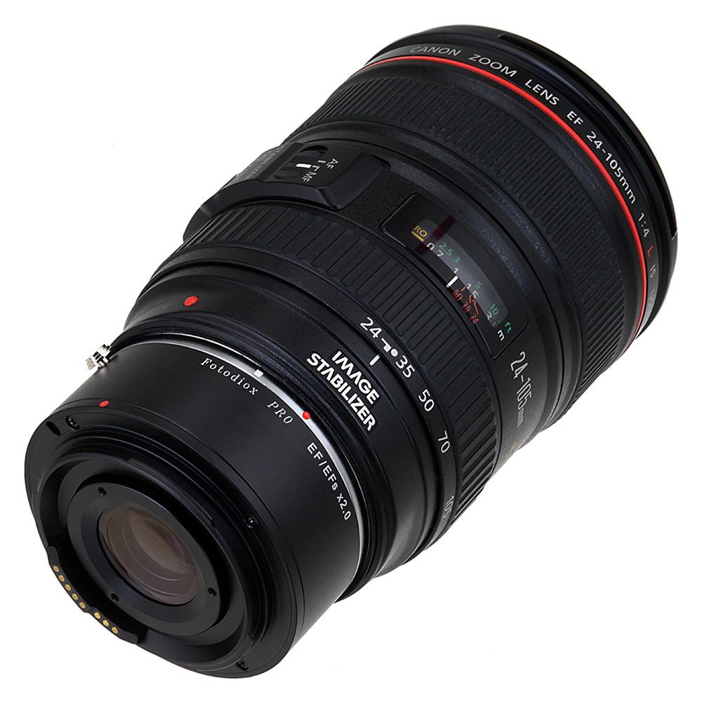 Doubles the focal length of a Canon EF lenses (2.0x Magnification Factor) (Will not fit all EFs lenses due to long rear element length)