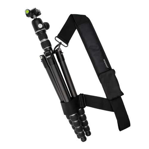 This shoulder strap works with all ProMaster XC-M tripods. It quickly attaches the the machined strap slot in the yoke of an XC-M tripod using a quick release buckle. The other side of the strap slides around the lower portion of the tripod's legs like a lasso.