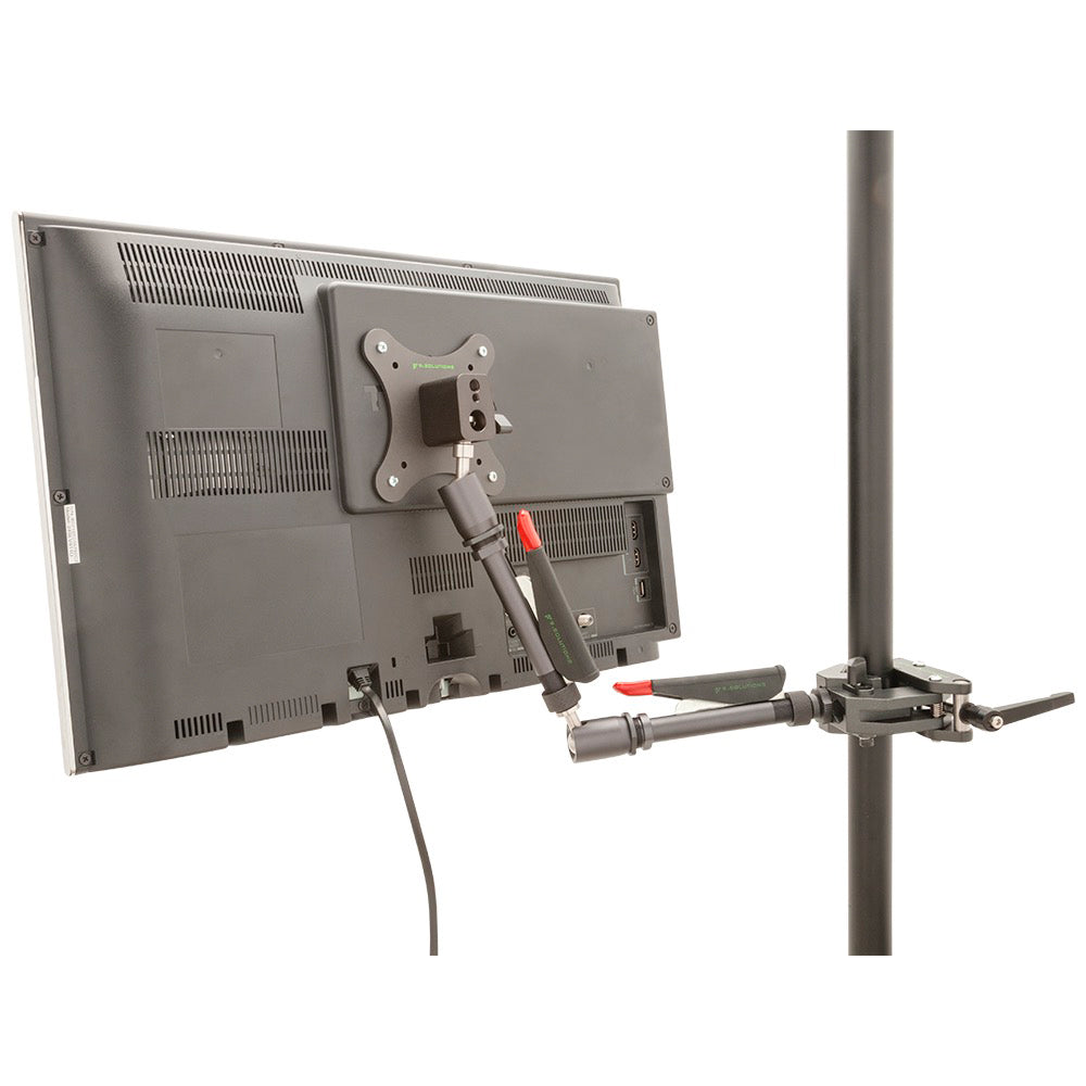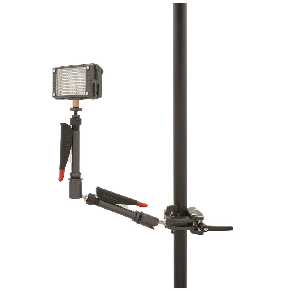 The El-Bo Arm is the fundamental design behind a series of incredibly strong articulating arms that can be used to hold lights, cameras, monitors, musical instruments, tablets, and more. The El-Bo Arm has an elegant knee-locking mechanism that makes it possible to operate with one hand. The mechanism makes repositioning the arm quick and easy. The Double El-Bo Arm allows for easy positioning of mounted equipment. Its jointed arm allows you to mount gear in nearly any position needed. One end of the Double El-bo Arm has a 5/8" pin with a 3/8"-16 female thread and the other has a 3/8"-16 male thread. The El-Bo Arm series of articulating arms is patent protected.