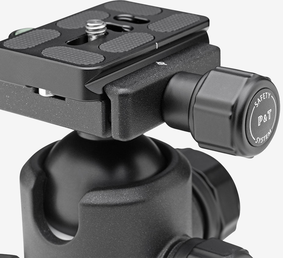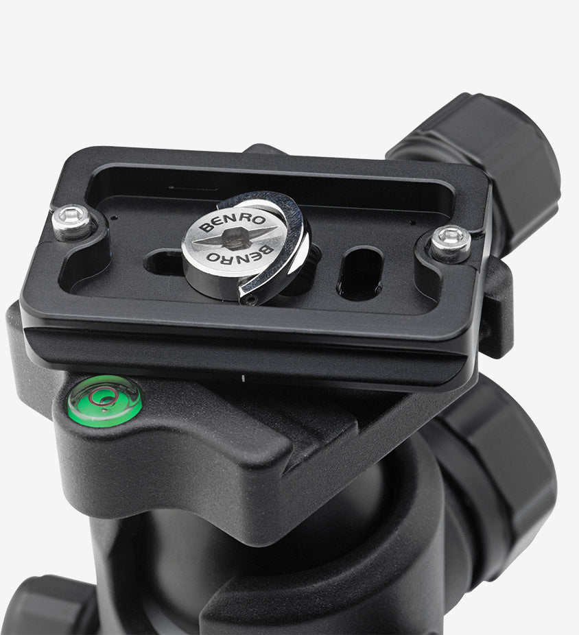 The IB1 Triple Action Ball Head is an Arca-type compatible head with a load capacity of 17.6 lb. It stands 3.8" high, and weighs 12.8 oz. There are separate locks for both the ball movement and the 360° panning motion, as well as a friction control knob. A 90° notch makes it easy to switch to portrait orientation. The numbered scale on the head's base allows for easily repeatable pans, and a bull's eye bubble helps ensure they head is level with the horizon. for easily repeatable pans, and a bull's eye bubble helps ensure they head is level with the horizon.