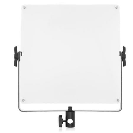 The Milk-White Diffusion Filter with K4000, a dense diffusion filter that creates a true soft-box effect. The filter itself sits 5 cm in front of the light, held in place by four support rods. With the filter being offset from the face of the light, it allows the diffusion filter to be illuminated evenly and creating a proper single light source. Not only does this offer an ultra-soft light but creates just a single shadow. Unlike most 1'x1' panels with open face LED sources which have the tendency for each diode to create cross-angled shadows, the Milk-White Diffusion Filter eliminates this problem, giving you an ultra-soft bright light source.