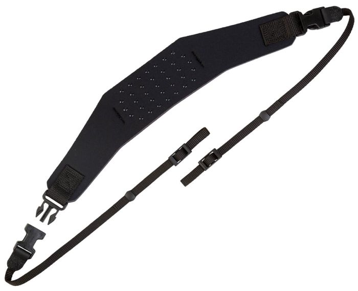 The Pro Strap™ is rapidly becoming the choice of professional photographers and people who use large cameras with long heavy lenses. It's also ideal for use on portable power packs. The patented weight reduction system makes equipment feel 50% lighter and 100% more comfortable. The weight is evenly dispersed while the strap functions as a shock absorber to eliminate neck and shoulder fatigue. The Non Slip Grip™ adds the finishing touch which enables camera gear to be safely carried slung over the shoulder. You'll definitely feel the difference! The 3/8" Webbing Connectors give added adjustability and versatility so a camera can be easily worn across the chest if desired.