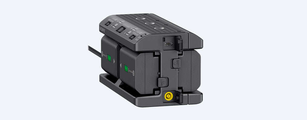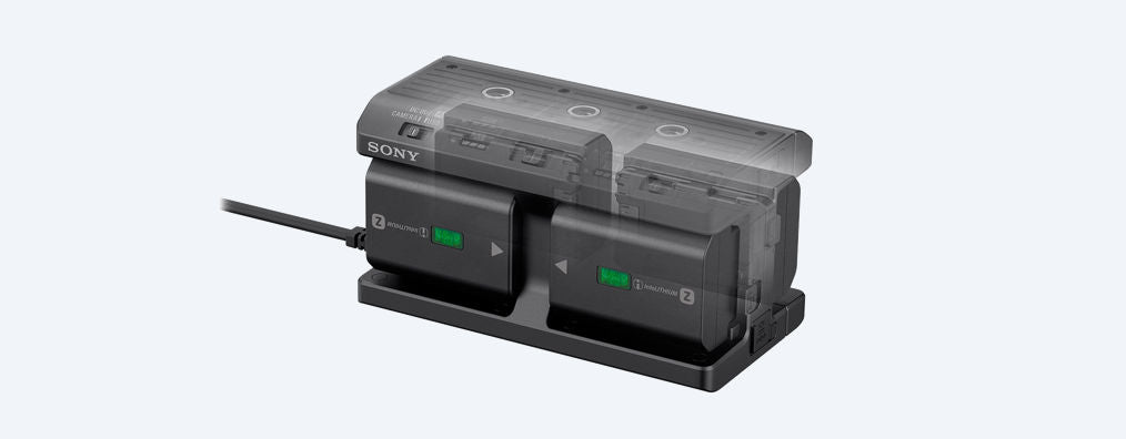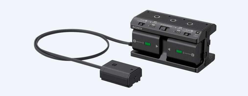 This battery adapter can quickly charge up to four NP-FZ100 Z-series batteries3 via AC adapter within about 480 minutes4. Power charge condition is indicated in a 3-level LED when the “remaining battery power” check button is pressed.