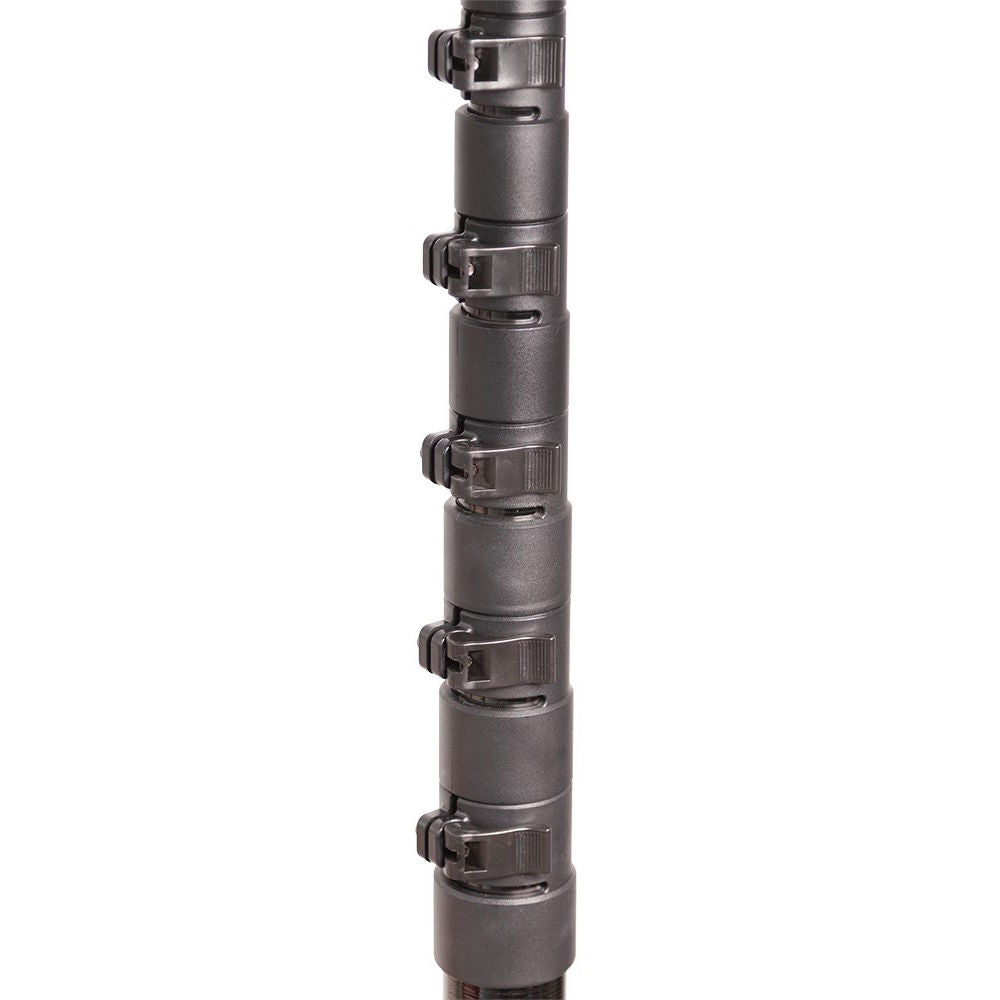 Get your camera high above the crowd with the SA1241 MegaMast Carbon Fiber Camera Stand from Studio Assets. Able to extend to 27.5' and hold up to 6 lb, this stand will provide unique aerial views while you remain on solid ground. Made with 7 carbon fiber risers and aluminum legs, the stand folds down to 64.25" and has a minimum working height of 64.5". Each section has a latch that closes to the side to secure the pole to the desired height. These latches are designed to not loosen over time and don't require tightening. Additionally, a tilting head is mounted to the top of the stand to allow you to adjust the angle, and a quick-release plate, which has a 1/4"-20 thread, allows for fast camera attachment and detachment.