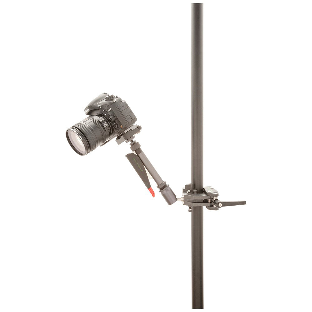 The El-Bo Arm is the fundamental design behind a series of incredibly strong articulating arms that can be used to hold lights, cameras, monitors, musical instruments, tablets, and more. The El-Bo Arm has an elegant locking-mechanism that makes it possible to operate with one hand. The compression handle locking-mechanism makes repositioning the arm quick and easy. The El-Bo Arm is fitted with a 3/8"-16 male thread and a 5/8" pin making it capable of being connected to industry standard equipment such as clamps and stands. The El-Bo Arm is a perfect solution for mounting equipment that needs to be positioned with finesse or for equipment that may need to be continually repositioned. The El-Bo Arm series of articulating arms is patent protected.