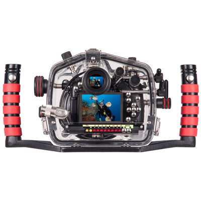 Exposure adjustments directly through the back of the housing put the perfect shot within reach every time. Tweak your TTL exposure or take total manual control without taking your hand off of your housing. Controls on the back of the housing acts as a remote control for compatible Ikelite DS-series strobes. Access plus/minus exposure compensation in TTL mode, plus manual power settings in half-stop increments.