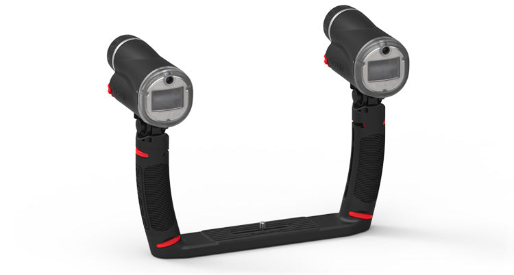 The Sea Dragon Duo X2 Flash includes Flex-Connect Dual Tray, two Grips, and two Sea Dragon Flashes