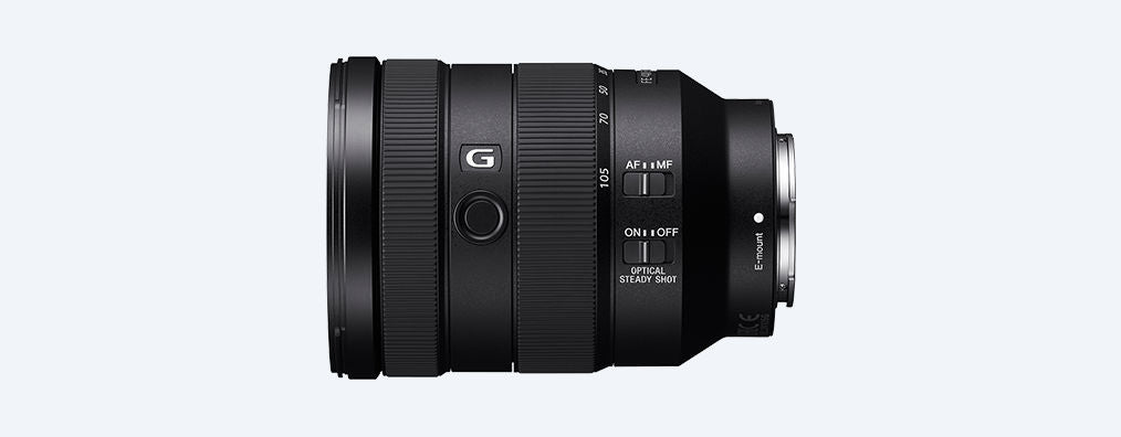 From 24mm to 105mm and F4 aperture throughout the zoom, the high-performance G Lens offers consistently high image quality. In addition to outstanding optical performance, it has a compact, lightweight design for portability and mobility befitting the E-mount system. Fast, precise AF and high reliability add to the broad utility of this fine zoom lens.