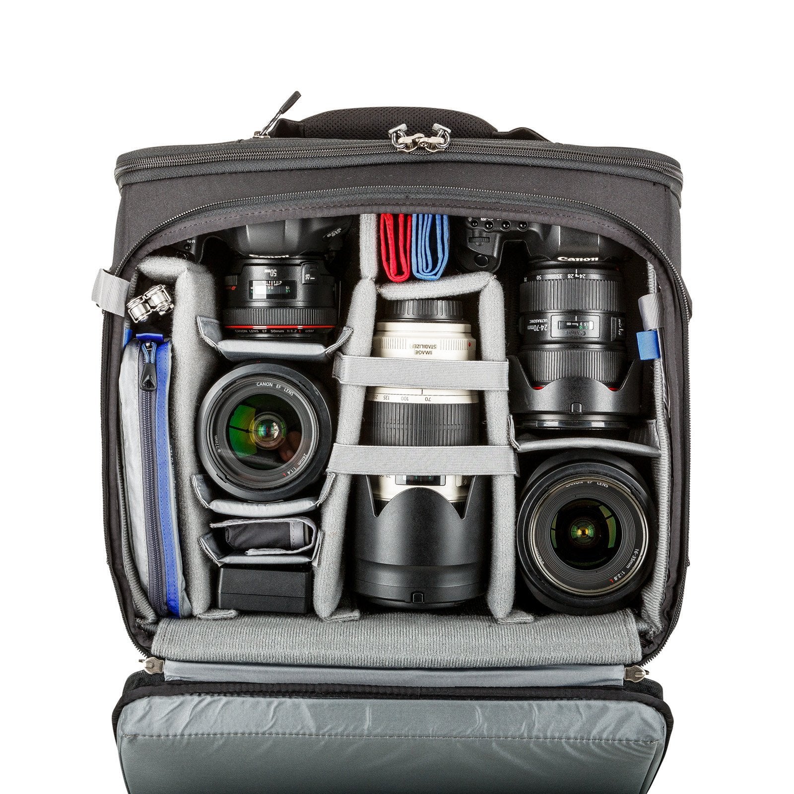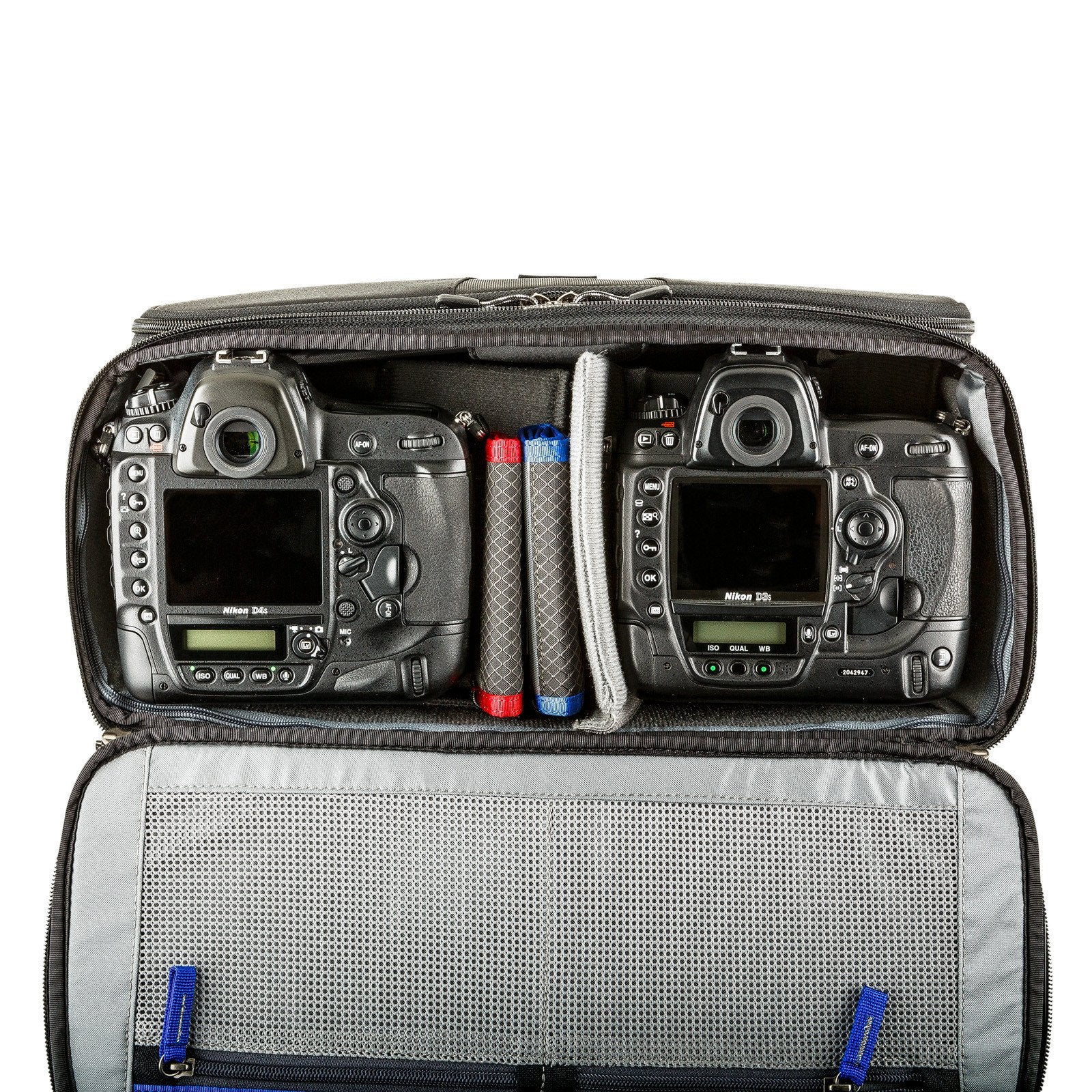 Dual access roller with top and front openings for rapid and unobstructed gear access, holds up to a 300mm f/2.8
